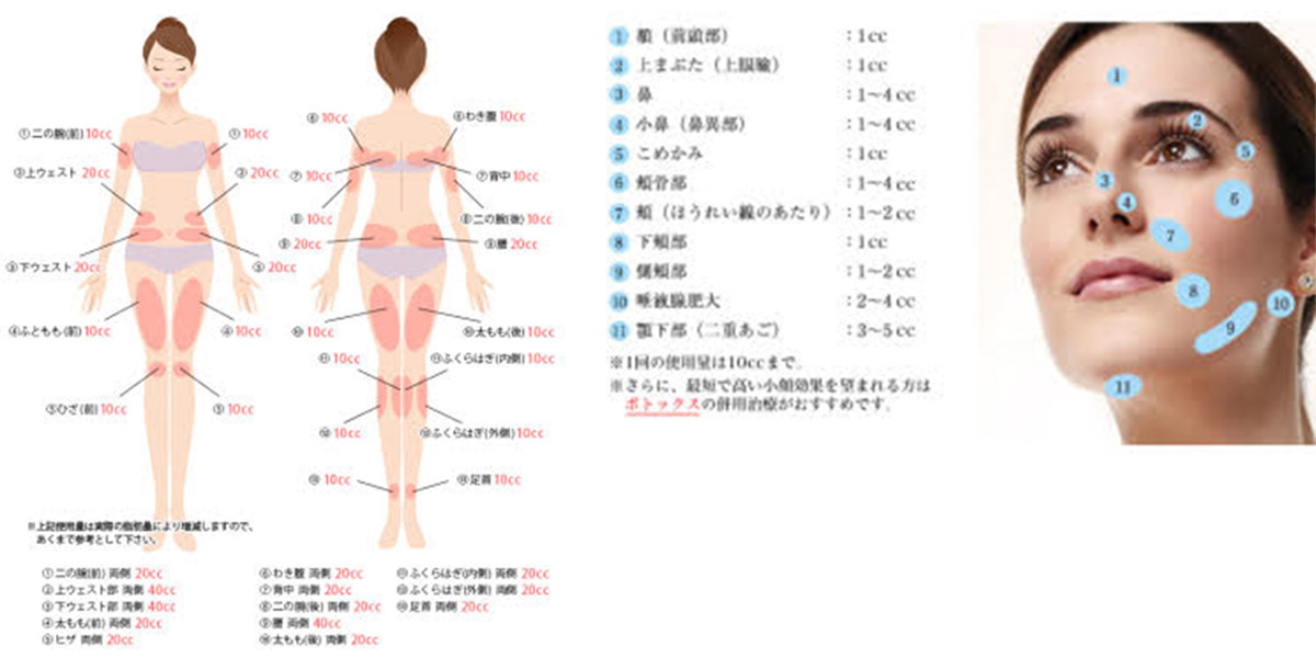 | 注射溶脂(BNLS) | 1cc 根据部位价格会有不同 |