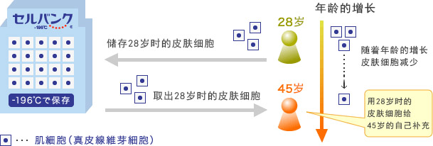 抽取自身皮肤细胞数量稀少但是有活力的真皮纤维芽细胞,切取米粒大小的的皮肤抽出干细胞。